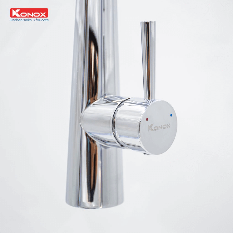 – 100% vòi rửa bát Konox có Logo Konox in Laze trên tay vòi